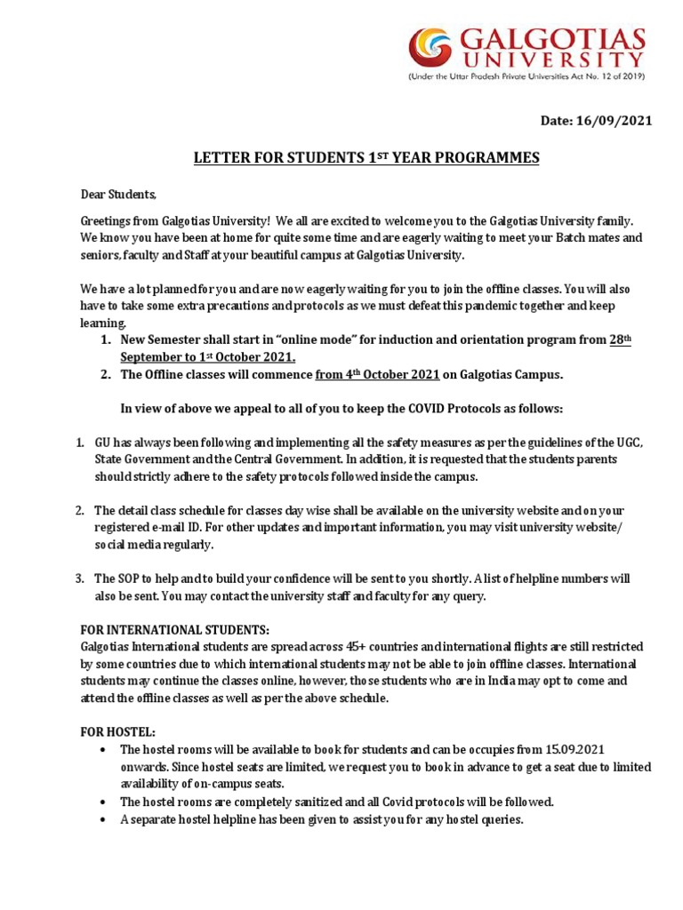 Letter For Students 1st Year Programmes Gu Pdf Online And Offline Health Sciences